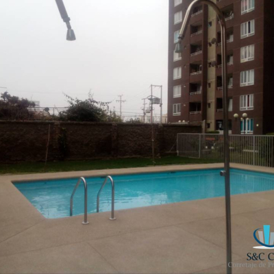 Espacios comunes: Vigilancia las 24 hrs, piscina, ascensores, sala de eventos, lavandería, gimnasio, zona de juegos para niños, áreas verdes y estacionamientos de visitas.